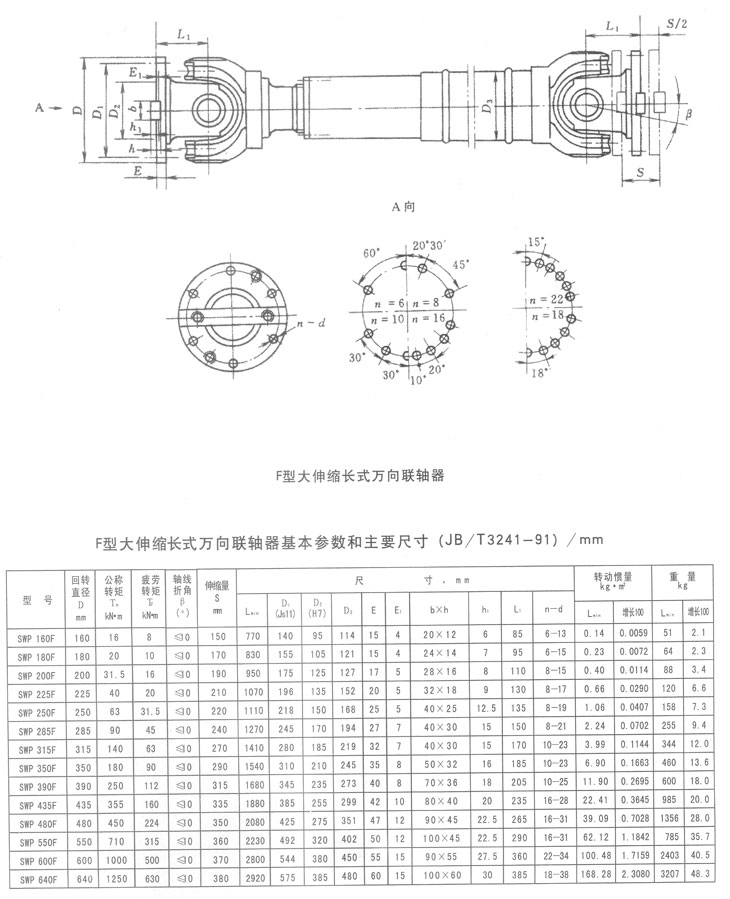 F型大伸縮長型萬向聯(lián)軸器基本參數(shù)和主要尺寸