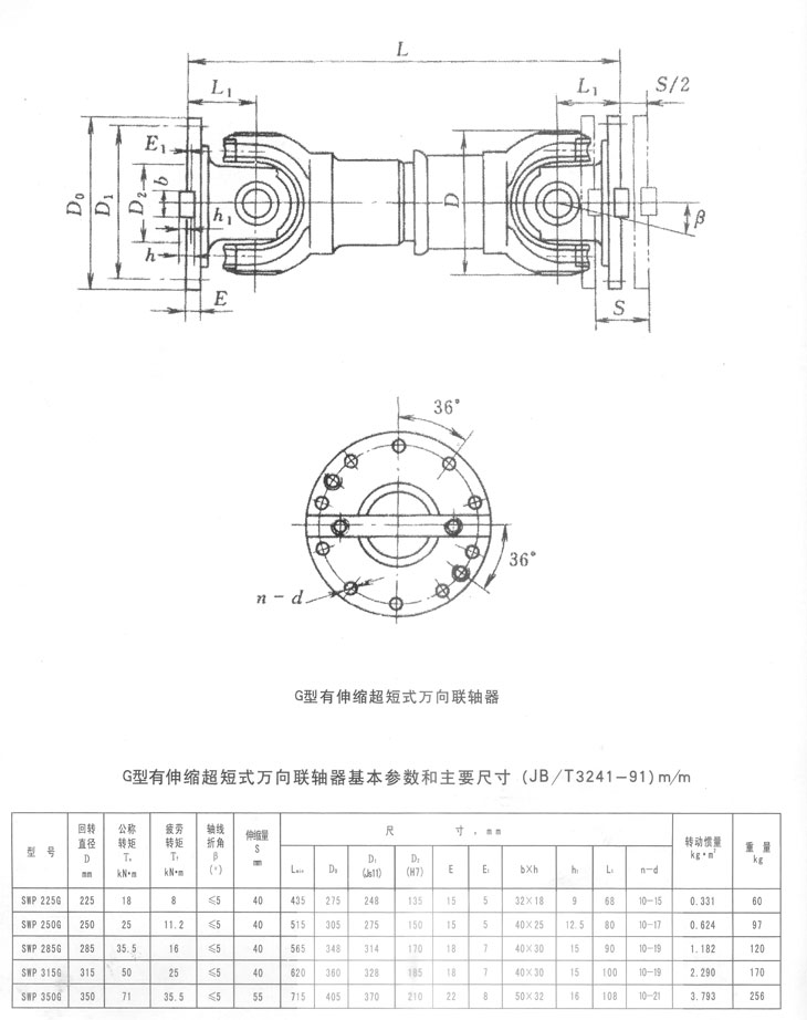 G型有伸縮超短型萬向聯(lián)軸器基本參數(shù)和主要尺寸